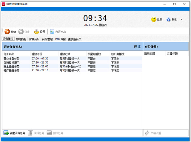 6、可以单独设置音乐和语音的定时播放列表,而且音乐与语音会自动协调,让商场的音乐持续不断,营造出良好的氛围。